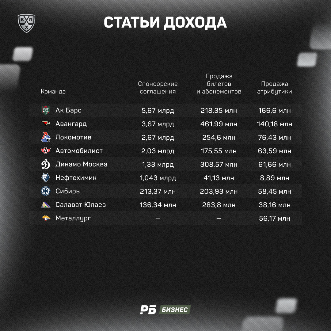 Третьим по выручке стал омский «Авангард», заработавший 4,44 млрд рублей. Спонсорские соглашения принесли омскому клубу 3,67 млрд рублей.