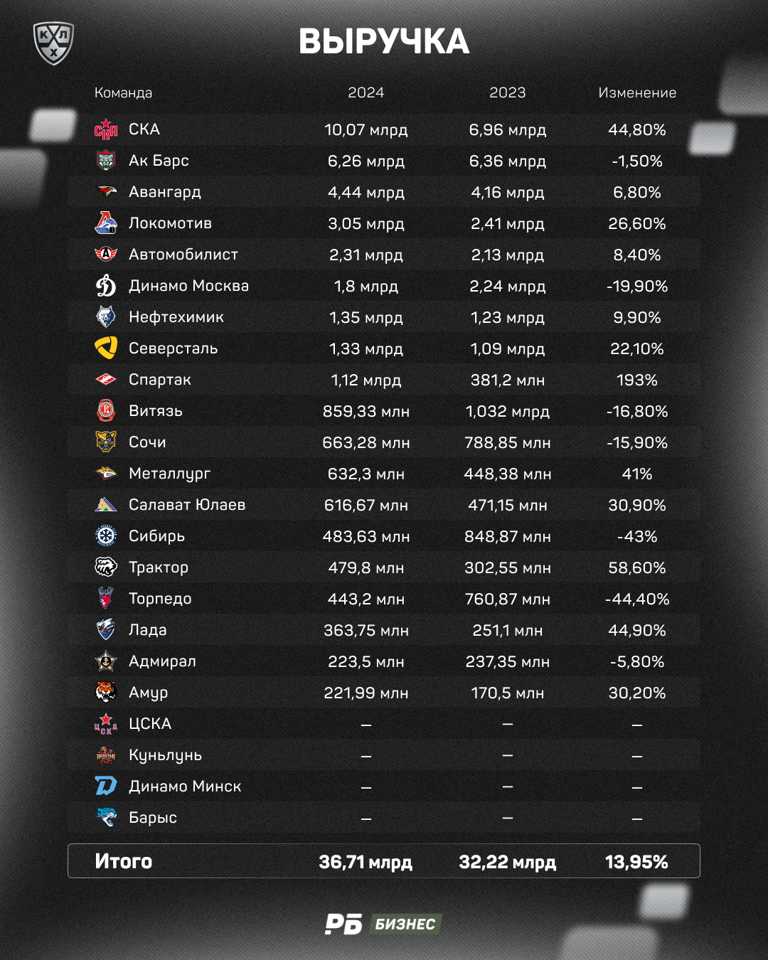 Важно отметить, кого в этом импровизированном рейтинге не будет: всех иностранных клубов (минское «Динамо», китайский (почти) «Куньлунь» и казахстанский «Барыс»), а также ЦСКА. Армейский клуб уже несколько лет скрывает свою отчетность.