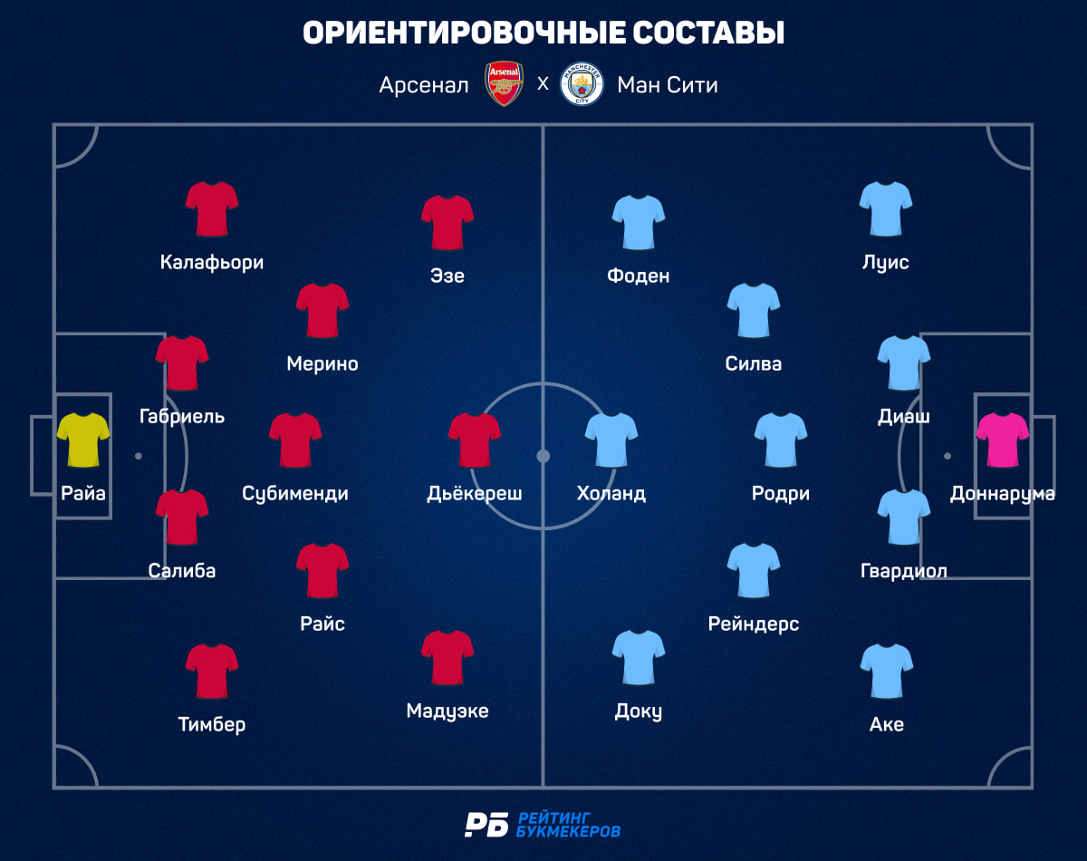 Из персоналий (помимо уже упомянутого Холанда) стоит обратить внимание на Деклана Райса. По прошлым сезонам было заметно, что «Манчестер Сити» для Деклана — идеальный соперник. Команда Гвардиолы любит разыгрывать мяч низом и привыкла рисковать в начальных стадиях атаки, а Райс — настоящий маэстро неожиданных перехватов. Так что в играх против «горожан» он нередко оказывается с мячом в опасных позициях. Поставить на гол Райса в ворота Джиджи Доннаруммы можно с жирным коэффициентом 5,70.
