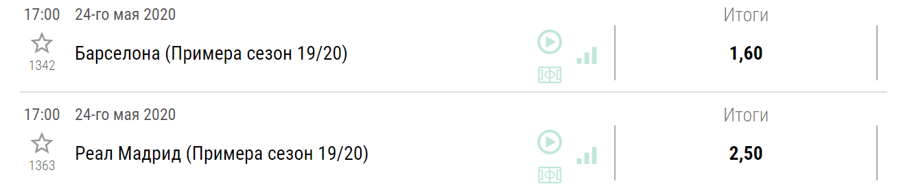 В этом сезоне БК «Лига ставок» оценивает шанс победы «Барселоны» коэффициентом 1,6, что соответствует 62-процентной вероятности. Главным соперником сине-гранатовых считается «Реал Мадрид». Поставить на победу белых можно за 2,5. В процентах вероятности это 40%.