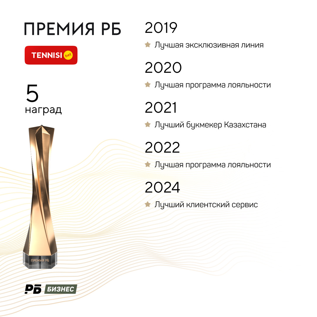 Букмекер забирал по одной статуэтке по итогам каждой из Премий. Дважды лучшей признавалась программа лояльности Tennisi. Кроме того, букмекер становился лучшим в номинациях: Лучшая эксклюзивная линия, Лучший букмекер Казахстана и Лучший клиентский сервис.