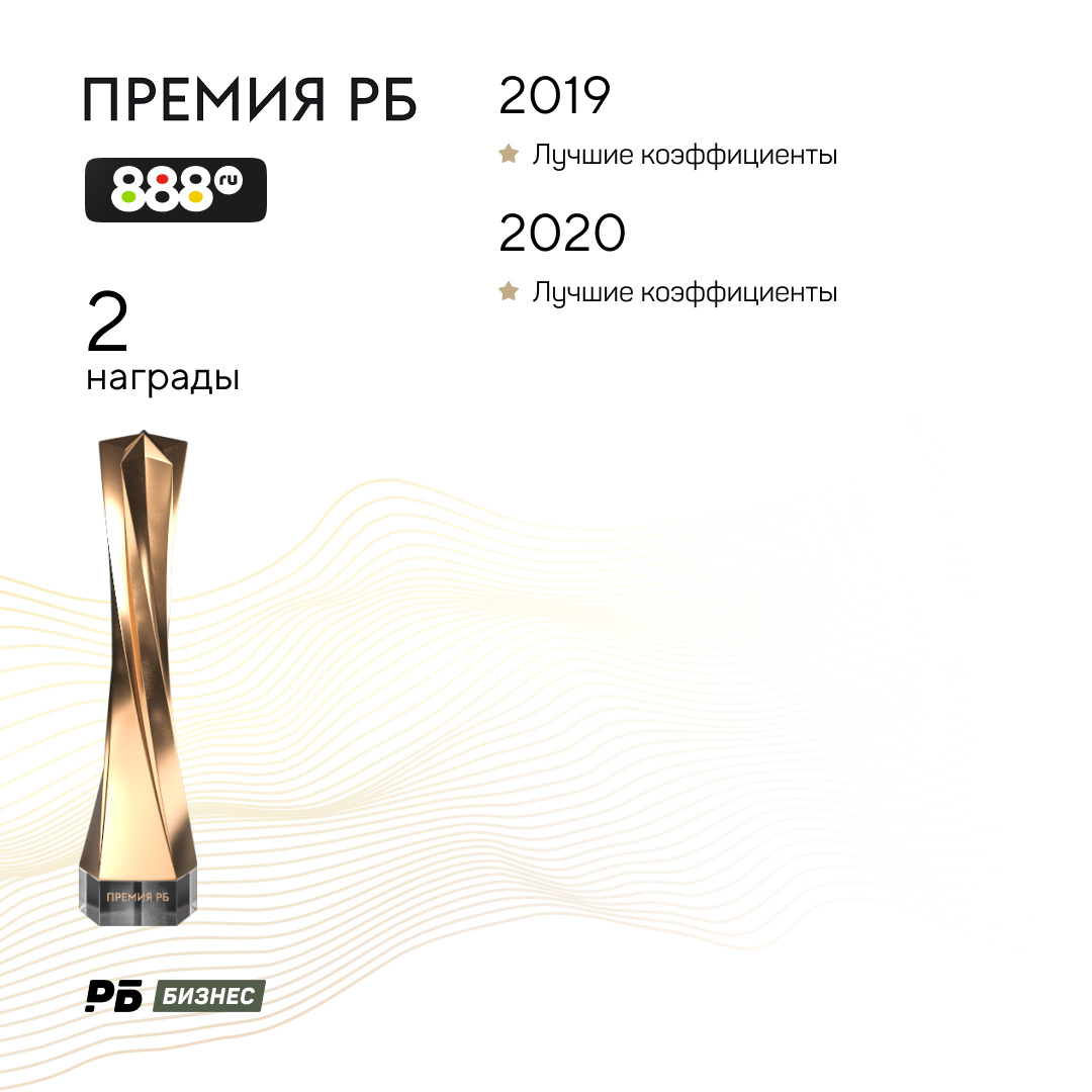 Букмекер прекратил работу в России осенью 2021 года. БК 888 принимала участие в Премии-2019 и -2020. Дважды 888 побеждал в номинации Лучшие коэффициенты.