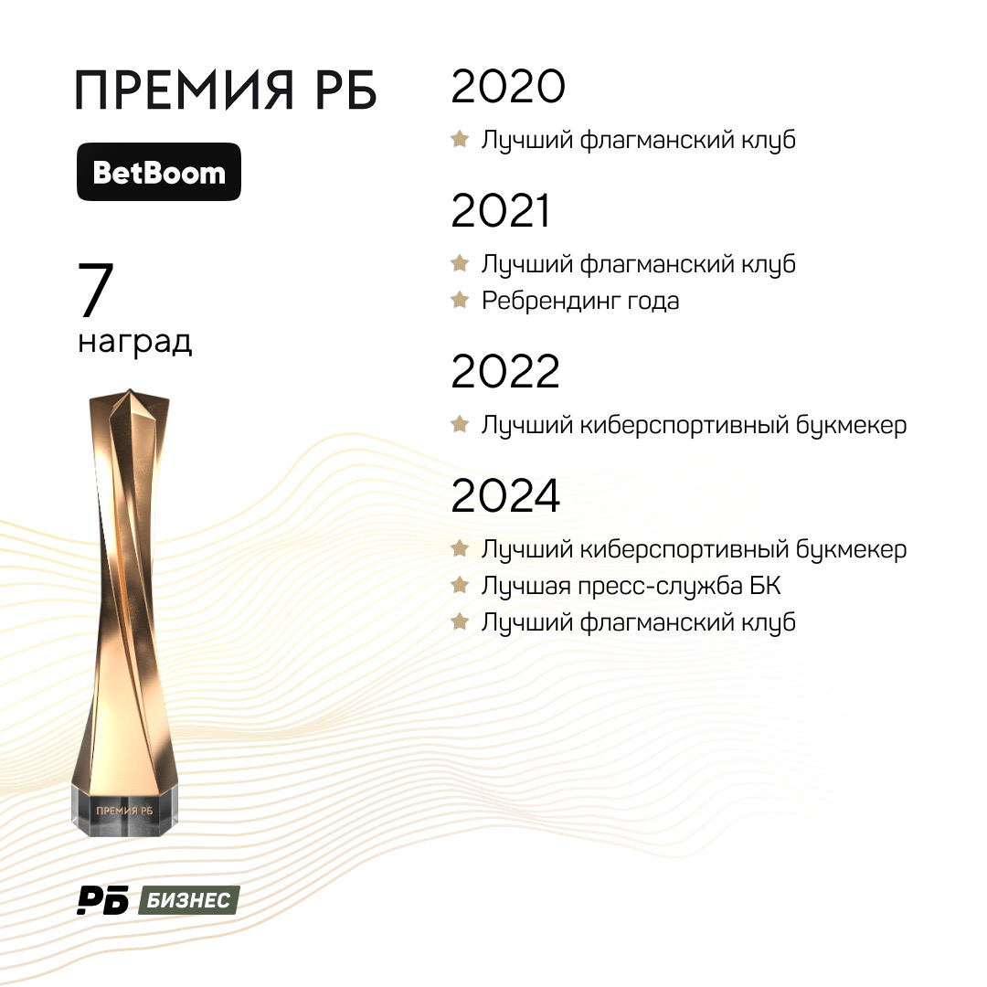 BetBoom дважды подряд признавался лучшим киберспортивным букмекером. Помимо него, эту номинацию выигрывал только GGBet, который несколько лет назад прекратил работу в России. Лучшей для BetBoom стала прошла Премия: тогда букмекер забрал три статуэтки.