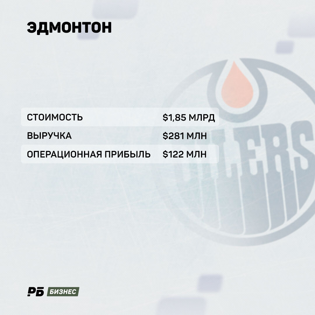 Значительно все лучше с деньгами у «Эдмонтона». Стоимость «Ойлерз» оценивается в $1,8 млрд – 7 место во всей лиге. Да и с финансовыми показателями у клуба из канадской провинции Альберта полный порядок.