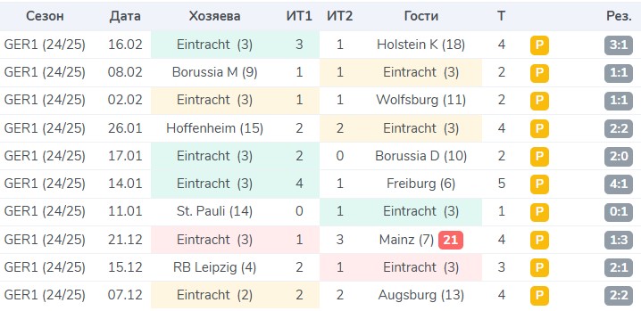 Если мы посмотрим франкфуртцев против топ-команд (трансферная стоимость 350+ млн евро), то здесь пари сыграло во всех пяти матчах. По нашей оценке, у этого расклада есть хороший перевес, поэтому предлагаем на нее поставить.