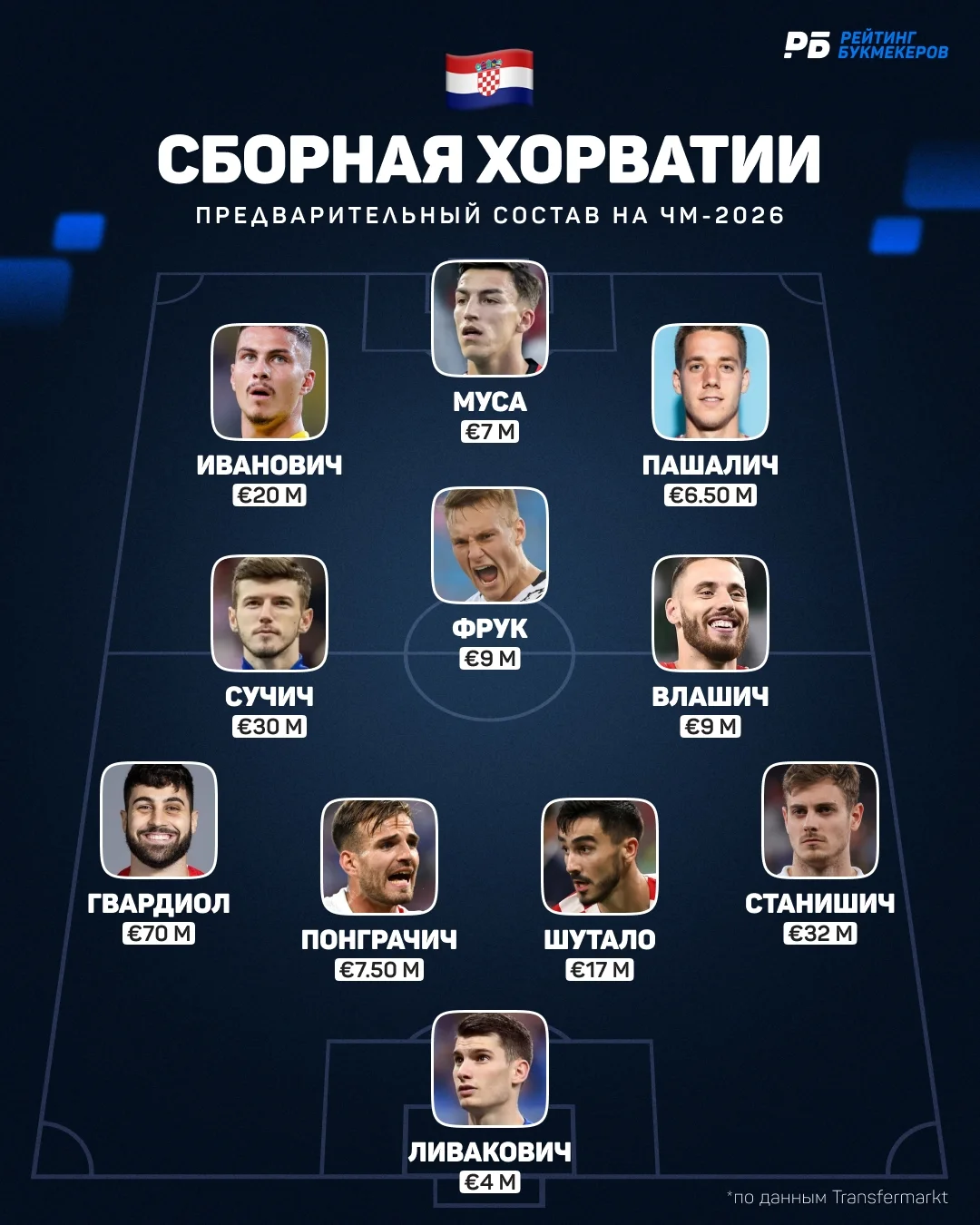 Жеребьевка чемпионата мира для Хорватии оказалась не самой удачной: «шашечные» в одной группе с Англией, Ганой и Панамой. Коэффициент на победу хорватов на ЧМ-2026 после жребия вырос с 70,00 до 90,00.