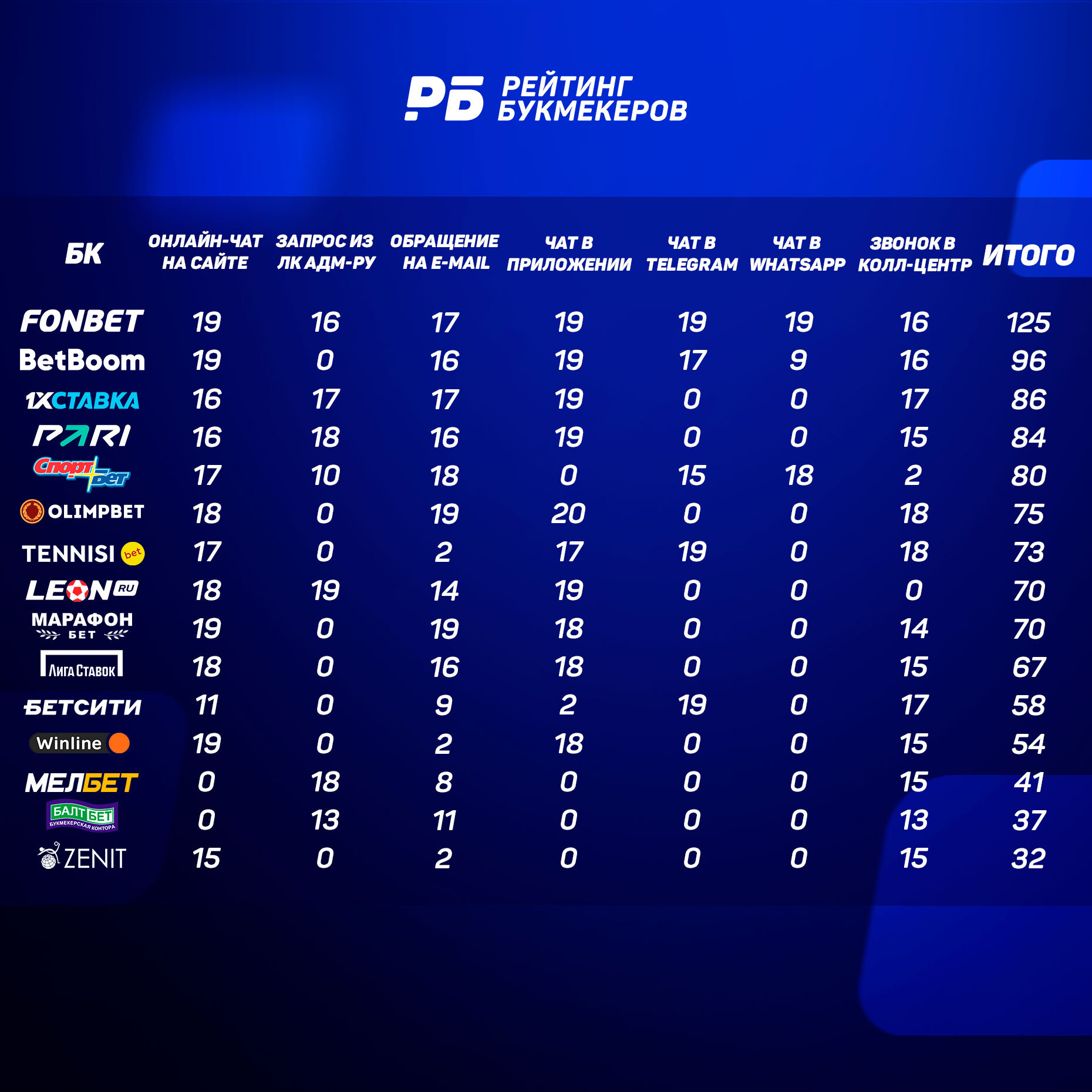 Второе место занял BetBoom с 96 баллами, а третье — «1xСтавка» с 86 баллами.