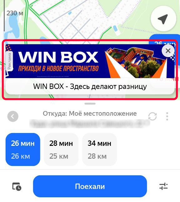 Например, спонсорские активы букмекеров могут случайным образом выпасть в навигаторе. Даже когда маршрут совсем не пересекается с возможным.