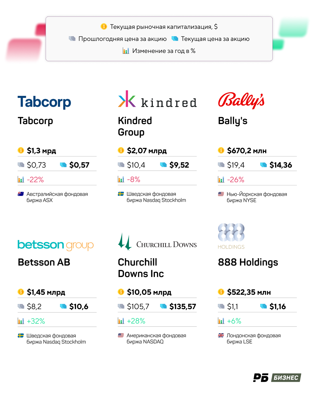 Ценные бумаги шведской Betsson AB (Betsson, Betsafe и Nordicbet) выросли почти на треть (+32%). Компания активно вкладывалась в маркетинг и заводила новые партнерства в Европе и Латинской Америке, став спонсором аргентинской «Боки Хуниорс», греческого АЕКа и других клубов. Во втором квартале года Betsson отчиталась о рекордном для себя доходе в рамках одного квартала - €236 млн.