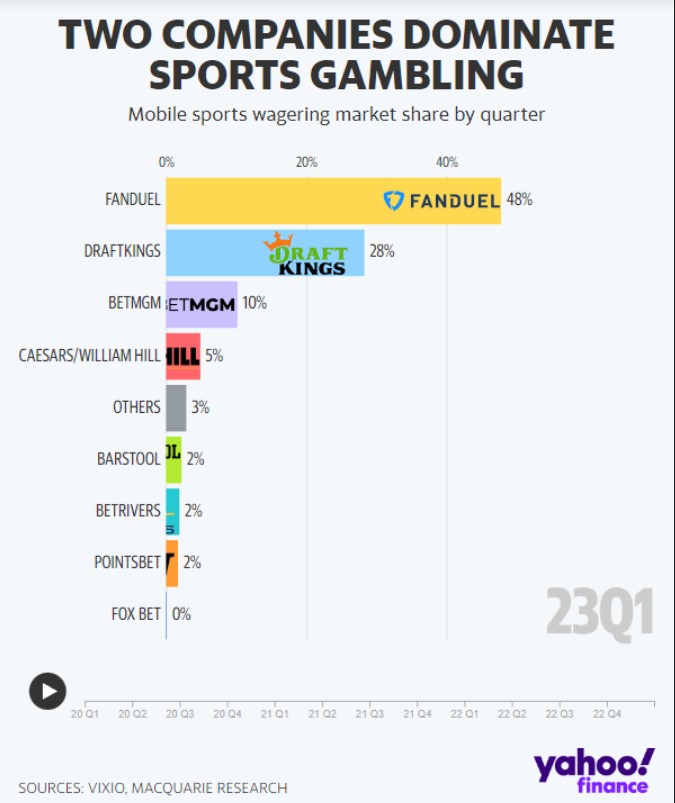 «Мы уже видели подобные заходы на рынок во всех существующих сферах – важно лишь качество продукта! А в этом мы уверены, поскольку на данный момент наш продукт является лучшим, и он будет становиться еще и еще лучше!» – подчеркнул соучредитель и генеральный директор DraftKings Джейсон Робинс.Другая половина экспертов, наоборот, воспринимает союз ESPN и Penn как заведомо проигрышное мероприятие, которое не сможет на равных конкурировать даже с менее крупными букмекерами из топ-5, например, с BetMGM (доля рынка 10%), Caesars (5%) или William Hill (5%).