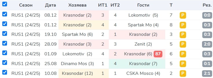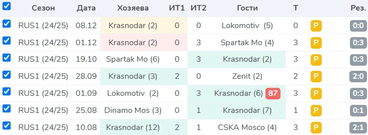 Для «Краснодара» даже ничья будет хорошим результатом, тем более после того, как «Спартак» потерял очки против «Динамо» из Махачкалы. У гостей по нашей ставке всего 4 из 8 по тому же фильтру, что и для СБГ. Но и ни разу не было четырех или более забитых мячей за матч.