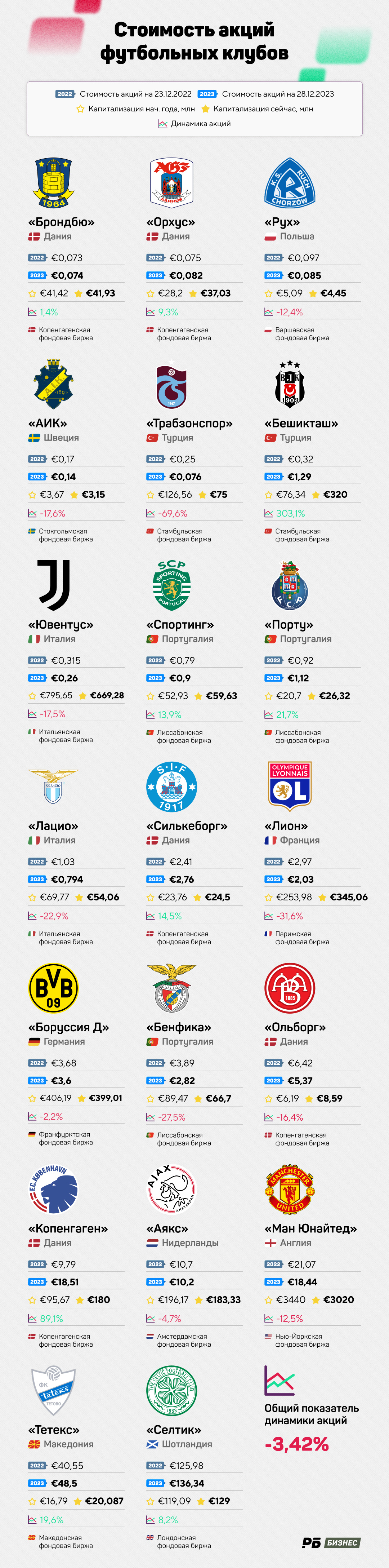 Мировой футбол за год подешевел на 3,4%