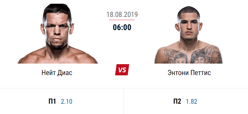 Практически идентичные коэффициенты предлагают и зарубежные букмекеры. Например, БК William Hill оценивает шансы Петтиса и Диаса коэффициентами 1,8 и 2,0 соответственно.