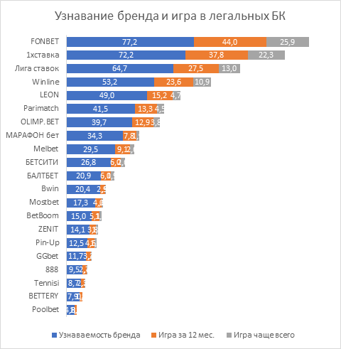 «Думаю, что в разрезе всего рынка азартных игр легальный сектор занимает 65%. Нелегальные казино, букмекеры и покерные сервисы совокупно составляют около 35% рынка», – заявила директор БК «Фонбет» по маркетингу Алина Якиревич.При этом «Рейтинг Букмекеров» ожидает дальнейшего сокращения нелегального рынка: по итогам года легальные операторы будут занимать 80-90% отрасли. Этот прогноз сделан исходя из текущей ситуации: власти предпринимают ощутимые усилия для затруднения доступа к нелегальным сервисам. Если раньше в основном блокировались сайты «серых» операторов, то теперь целью стали платежи. В конце 2019 года ЦБ ужесточил политику платежей в адрес нелегальных букмекеров и казино, а в данный момент Госдума рассматривает вопрос о крупных штрафах за услуги по переводу денег «нелегалам».