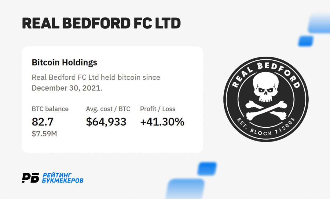Футбольные клубы — это бизнес, а успешный бизнес — это амбициозные цели. Мы позиционируем себя как первый в мире #биткоинклуб, что позволит нам открыть двери в международное сообщество фанатов и рынок рекламы. В итоге мы построим успешную финансовую модель, которая позволит нам бороться за титулы».На неизбежные сравнения с «Рексемом» владелец «Реал Бедфорд ФК» (новое название клуба) отвечает: