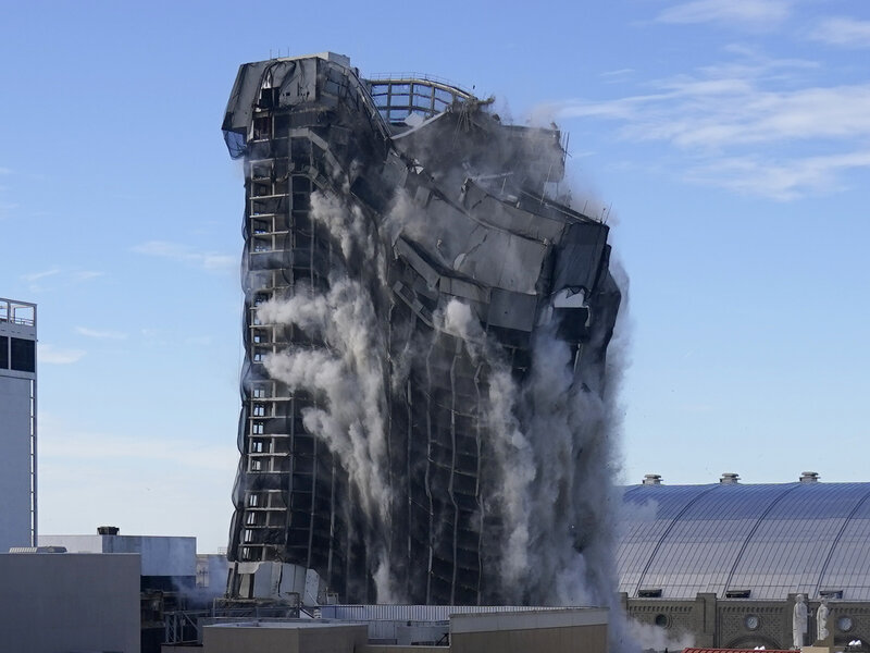 «Ни одно казино в мире никогда не зарабатывало таких денег», – отмечал Роффман.Аналитик был абсолютно прав. Казино такие доходы не потянуло и подало заявление на банкротство спустя год после открытия. Еще годом позже этому примеру последовали другие два актива Трампа в Атлантик-Сити. Важный факт: глава 11 закона о банкротстве позволяет реструктурировать или списать большую часть своих долгов перед другими компаниями, кредиторами и акционерами, оставаясь при этом в бизнесе, но под надзором суда по делам о банкротстве. Этим Трамп стал активно пользоваться. Началась волна реструктуризаций. Бизнесмен передал до половины активов казино держателям облигаций, что позволяло отсрочить конец. Но закончилось все так же ярко и шумно, как и начиналось: 10 октября 2016 года в 5:59 утра в Taj Mahal отключили свет и при помощи 3000 динамитных шашек взорвали здание, которое много лет стояло пустым. Решение о сносе было принято после того, как во время шторма куски от здания упали на набережную.