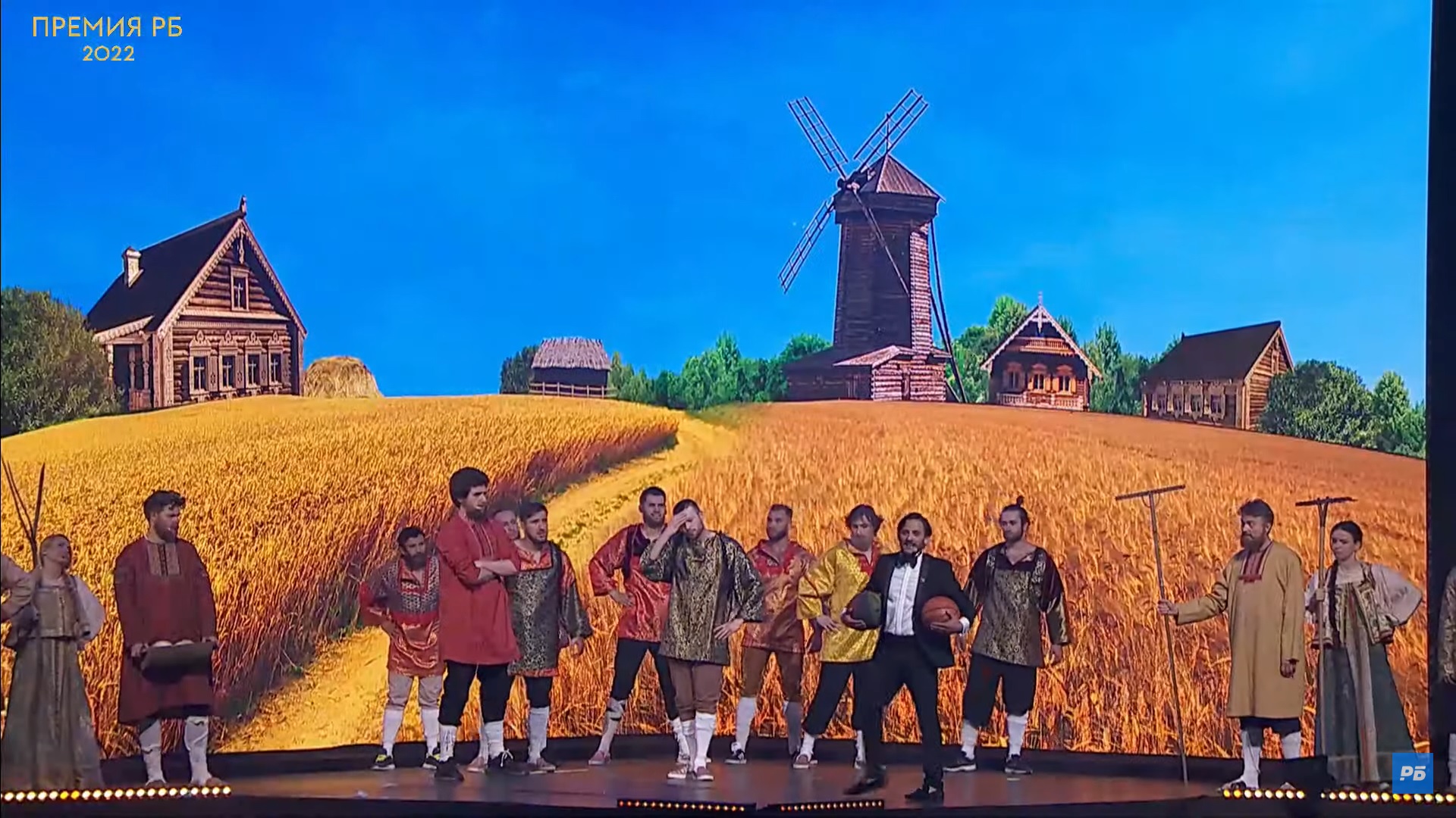 21:37. Между вторым и третьим блоком Премии РБ 2022 Михаил Башкатов попал в прошлое – люди в пшеничном поле поют «Эй, ухнем» с баскетбольными мячами. Круто же!