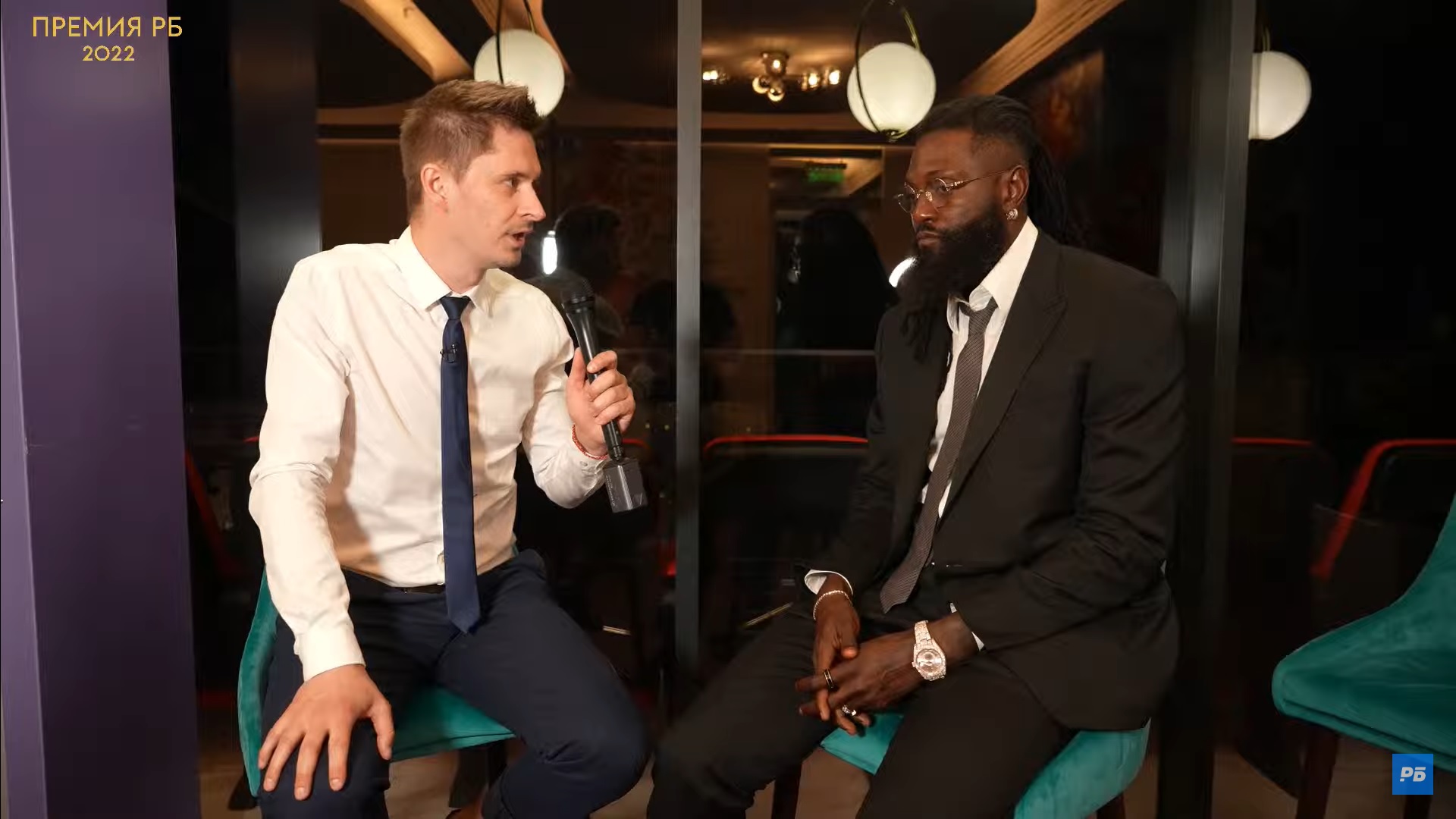 17:35. Сейчас на «Матч ТВ» идет прощальный матч хоккеиста сборной России Александра Семина. Но мы-то знаем, что нас ждет уже через пять минут. Интервью с амбассадором Премии РБ 2022 Эммануэлем Адебайором!