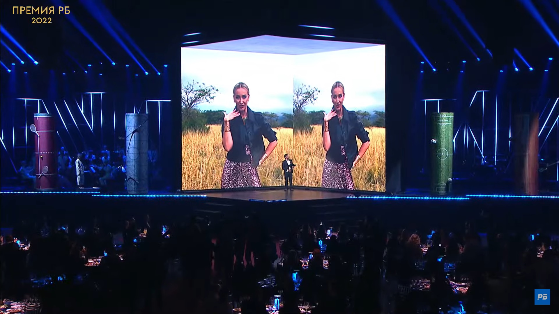 21:24. Перед стартом второго блока Премии РБ 2022 на сцене появилась ведущая Эмма Гаджиева. Вы точно помните ее по ставочным стримам нашего сайта.