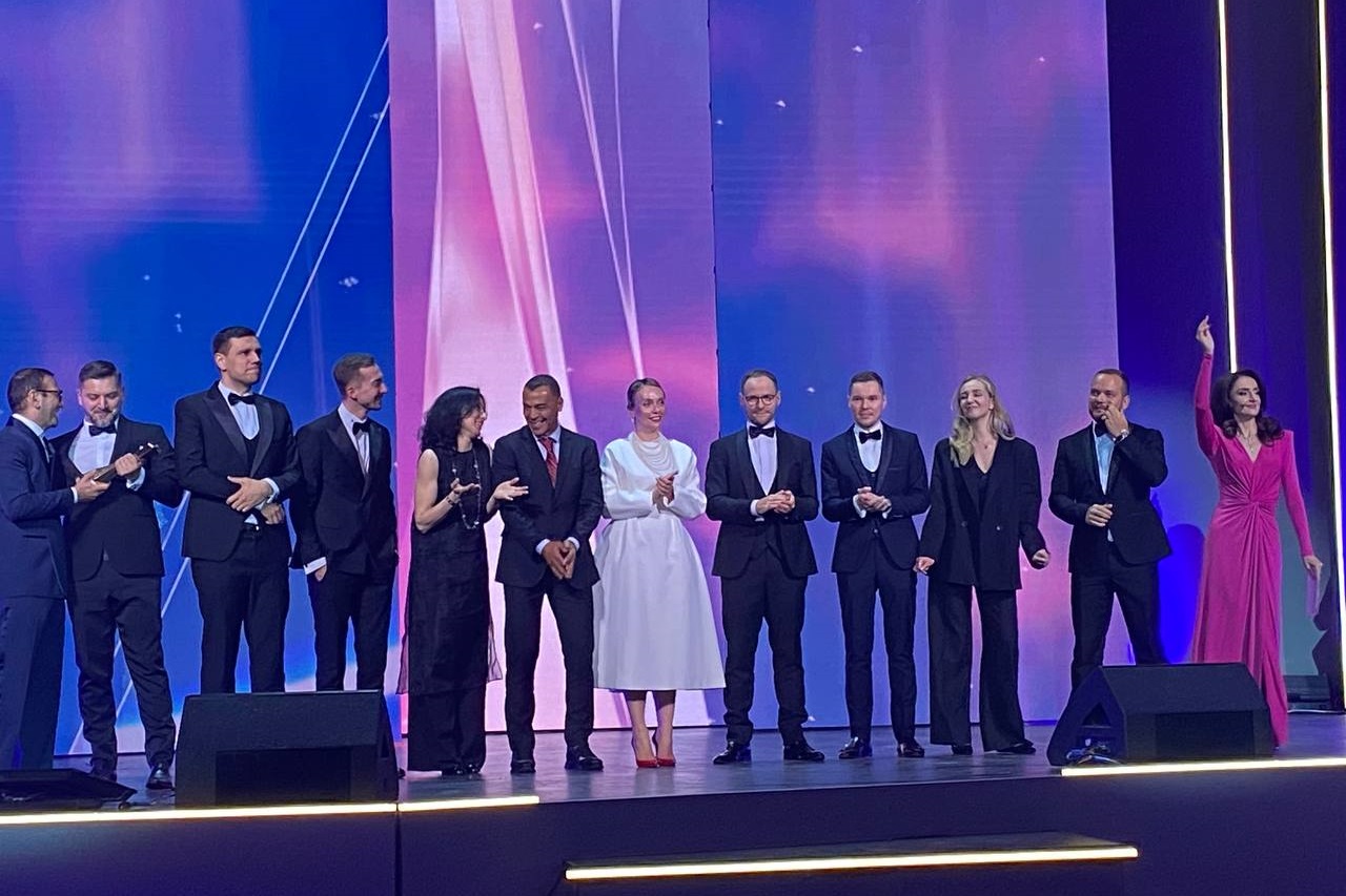 21:26. Во Дворце гимнастики Ирины Винер-Усмановой вручают Премию РБ 2024 в номинации «Лучшее спортивное событие «ВКонтакте». И им стал плей-офф КХЛ-2022/23! Босс отдела информации Континентальной хоккейной лиги Роман Соловьев благодарит соцсеть за помощь.