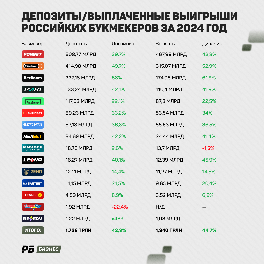 «Фонбет» также стал лидером по размеру выручки, заработав 608,81 млрд рублей.