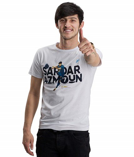 900 рублей стоит футболка с Азмуном. Есть любопытная деталь, связанная с позой иранца на фотографии, которая размещена на футболке. Принт специально подобрали таким образом, чтобы на зенитовской игровой форме не было видно логотипа Nike.