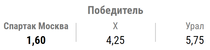 Согласно котировкам БК «Лига Ставок», хозяева считаются безусловными фаворитами предстоящей игры. Поставить на победу «Спартака» можно за 1,6, что соответствует вероятности 60%. Шанс победы «Урала оценивается котировкой 5,75. В процентах вероятности это 17%. Ничейный результат идет в линии с 4,25 пунктами, что соответствует вероятности 23%.