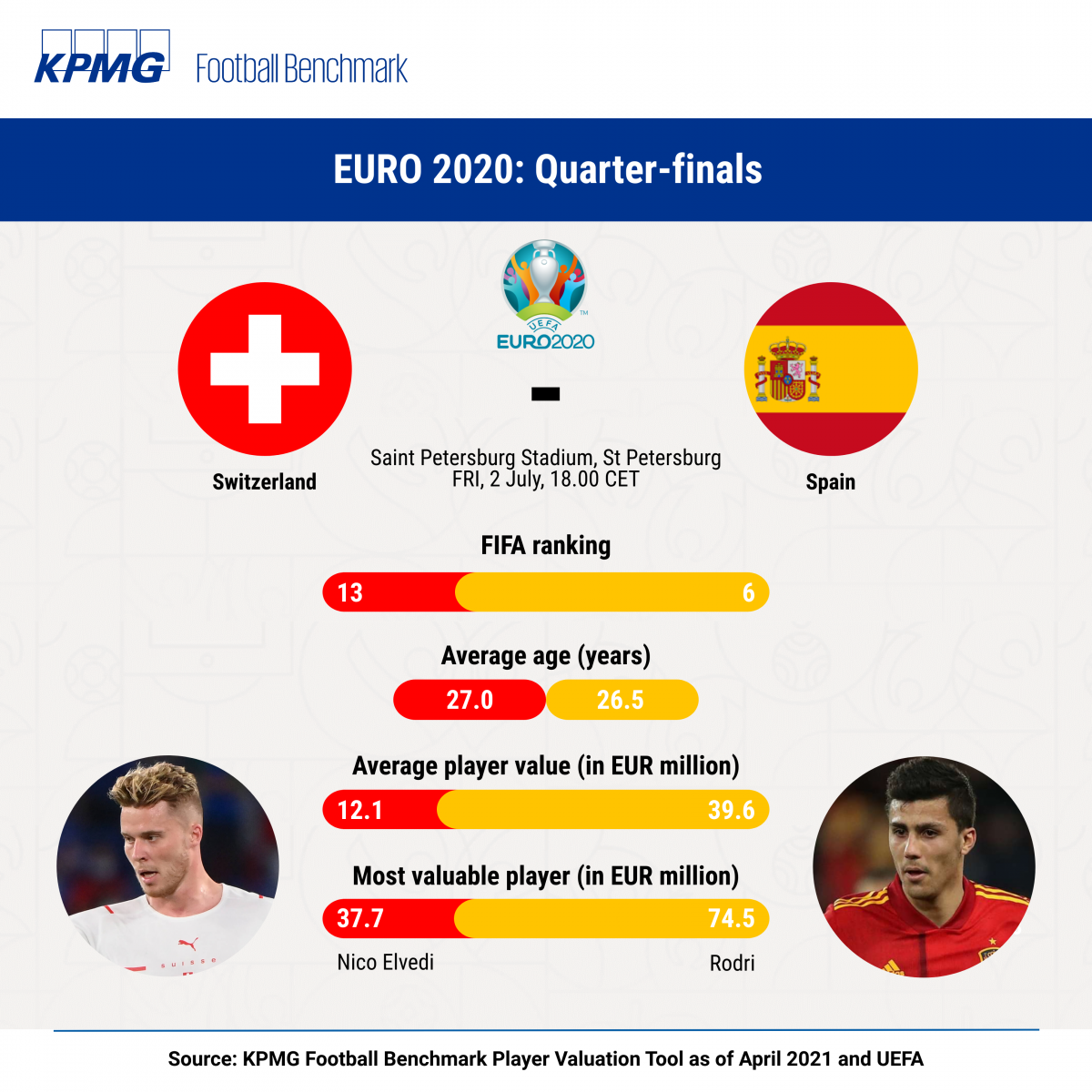 Средняя стоимость испанцев втрое выше, чем швейцарцев, – €39,6 млн против €12,1 млн. Самый дорогостоящий игрок сборной Испании – Родри, которого