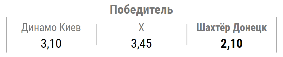 БК «Лига Ставок» считает фаворитом «Шахтер»: шансы донецкого клуба оцениваются коэффициентом 2,1, что соответствует 47-процентной вероятности. Поставить на «Динамо» можно за 3,1. В процентах вероятности это 32%. Ничейный результат оценивается коэффициентом 3,45 (вероятность 28%).