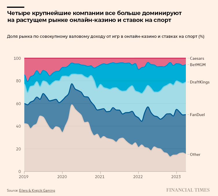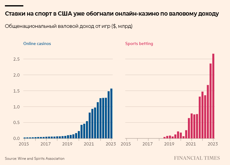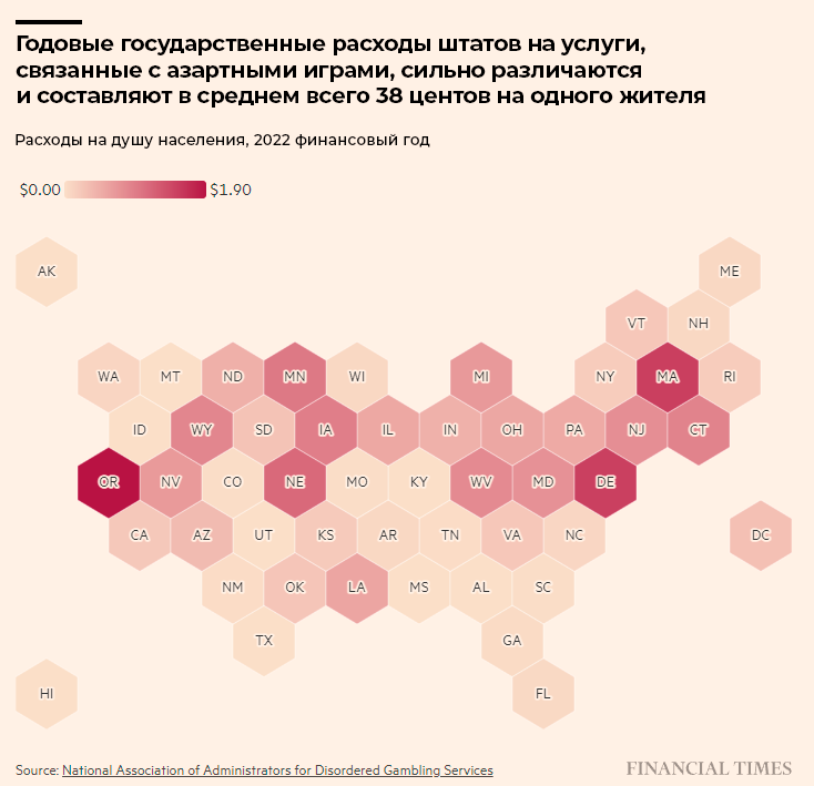 «Есть прекрасные примеры штатов, которые выделили достаточно ресурсов, чтобы помочь предотвратить или хотя бы смягчить проблемы с азартными играми, но есть и те, где это вообще не было приоритетом», — заявил директор по исследованиям регулятора штата Массачусетс Марк Вандер Линден.В начале 2023 года один из ведущих букмекеров США DraftKings был оштрафован регулятором штата Огайо на $500 тыс. за рассылку около 2500 рекламных объявлений людям младше 21 года и использование слогана «безрисковые ставки» в своих рекламных акциях. Поток рекламы букмекеров стал настолько колоссальным, что семь ведущих спортивных лиг США, включая НБА и НФЛ, которые являются основными бенефициарами рекламных контрактов с букмекерами, создали коалицию в начале этого года, чтобы сообща лоббировать ограничения на рекламу ставок.
