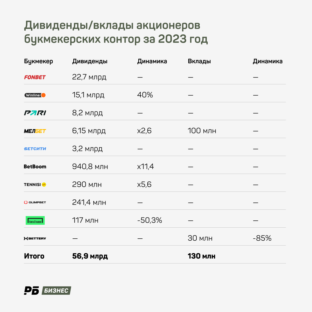 Так, «Фонбет» заплатил оператору платежей 16,2 млрд рублей – на 77,4% больше, чем годом ранее. BetBoom выплатил 5,2 млрд рублей (рост в 2,1 раза), «Лига Ставок» – 3,09 млрд рублей, Olimpbet – 2,17 млрд рублей.